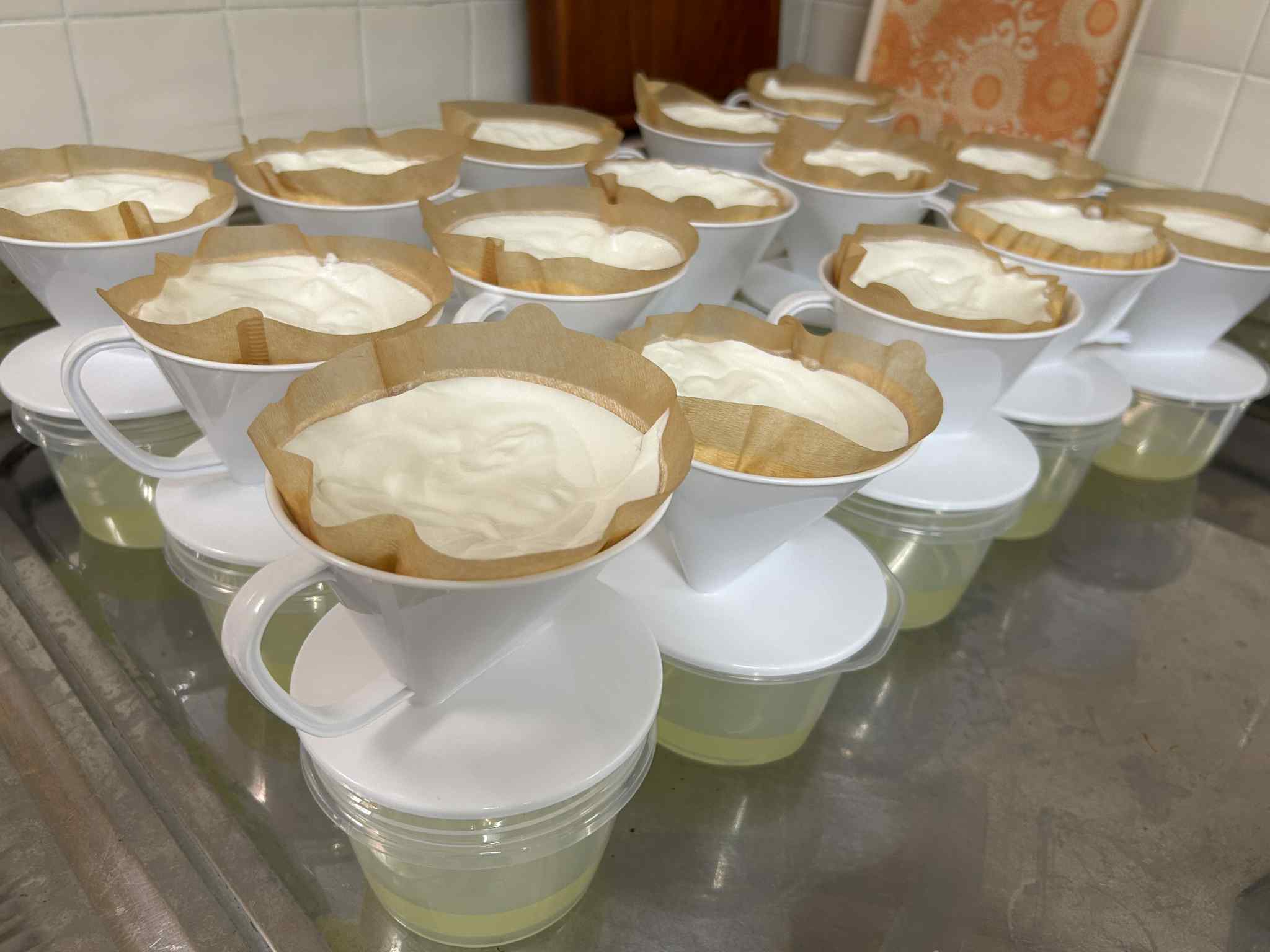 ドリップヨーグルトは当日の朝から水切りして用意したものを使用 。