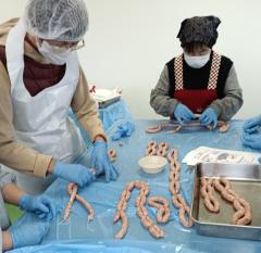 (感想)・手作りウインナーを皆でにぎやかに作り、試食しましたが、しっかりした味付けと食感があり美味しかったです。・腸に詰めるのが難しかったですが、コツをつかめたら楽しくできました。食べて美味しく体験もできて良い一日でした。