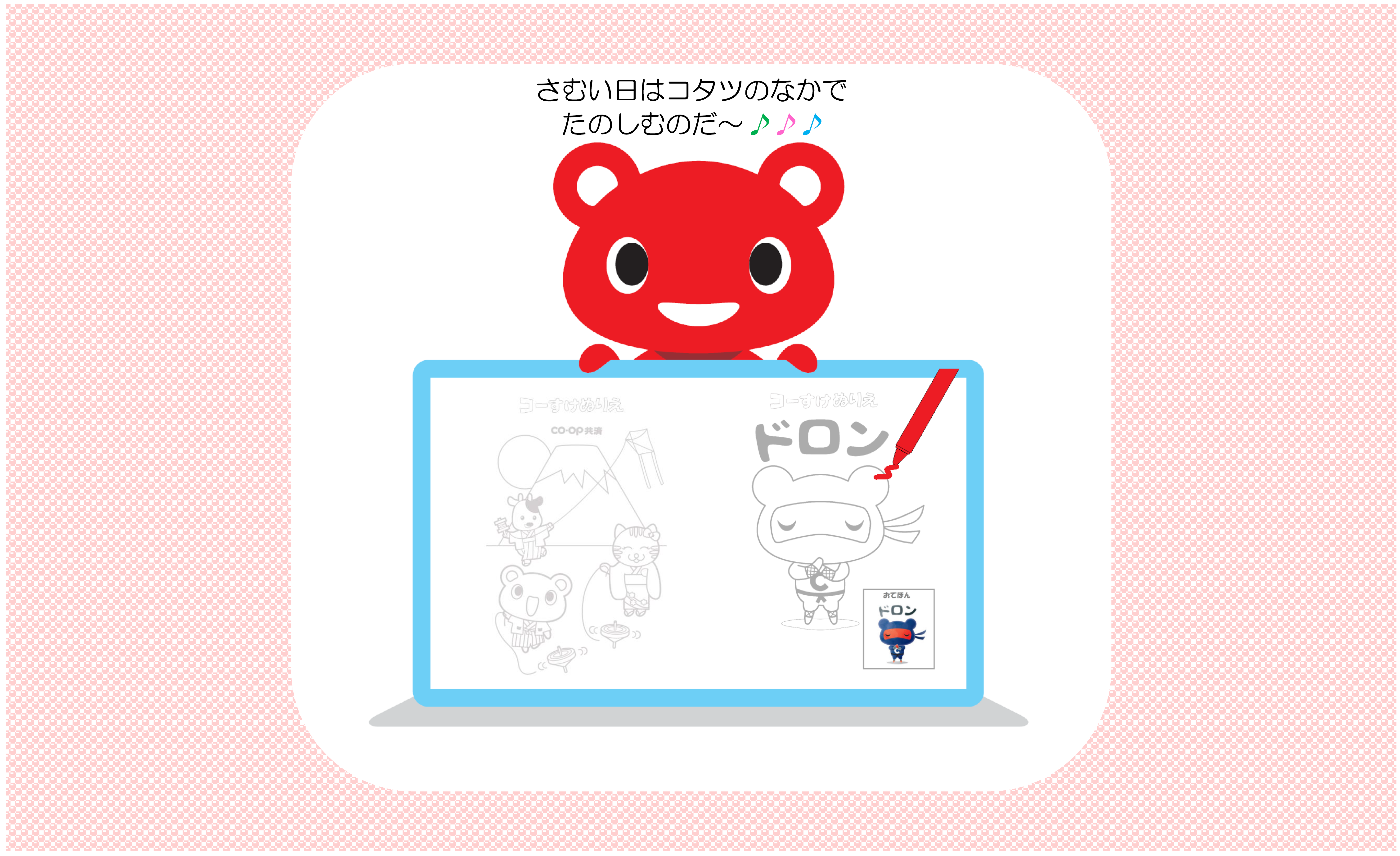 コープ共済キャラクター・コーすけのぬりえシリーズ。 新たに3つのデザインが仲間入り! 夜が長~いこの季節には、家族でなかよく コーすけのぬりえを楽しみましょう♪♪