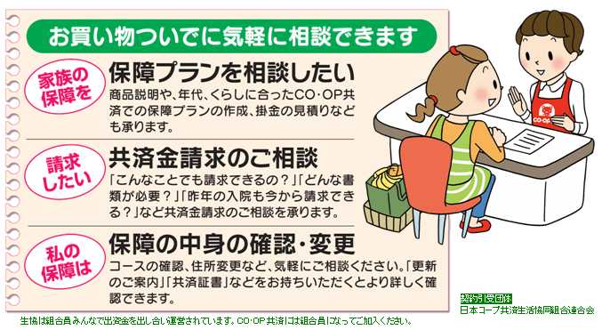 「保障のコープ商品」です。加入も請求も、いつもの生協職員が窓口だから安心です。