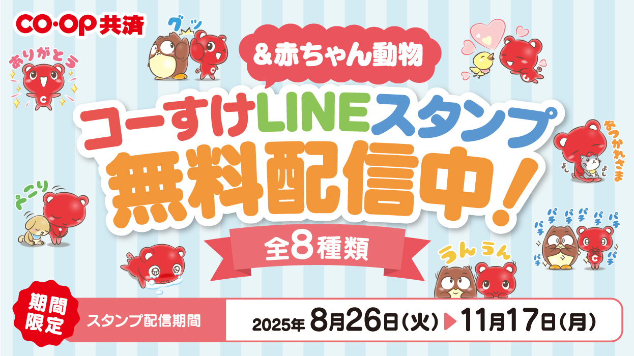 コープ共済 コーすけLINEスタンプ無料配信中!