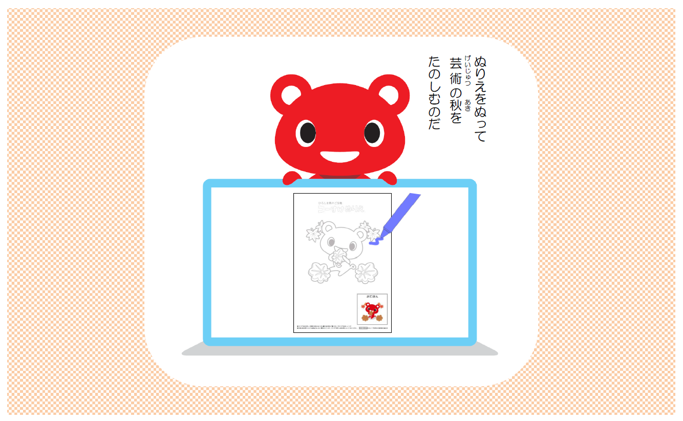 今月は「ひろしま県」のご当地コーすけぬりえをお楽しみください
