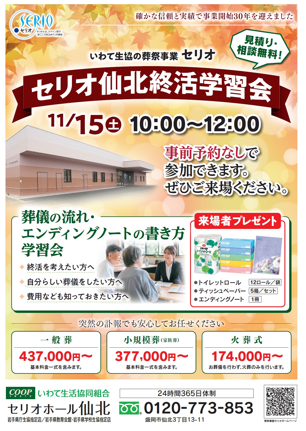 > 【セリオホール仙北】11月15日(日)「終活学習会」開催します