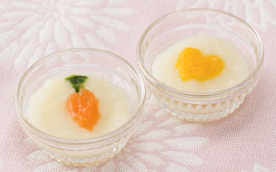 つぶしたじゃが芋大さじ1くらい、だし汁(または湯冷まし)大さじ1~1と1/2、野菜(かぼちゃ、人参)ペースト適宜