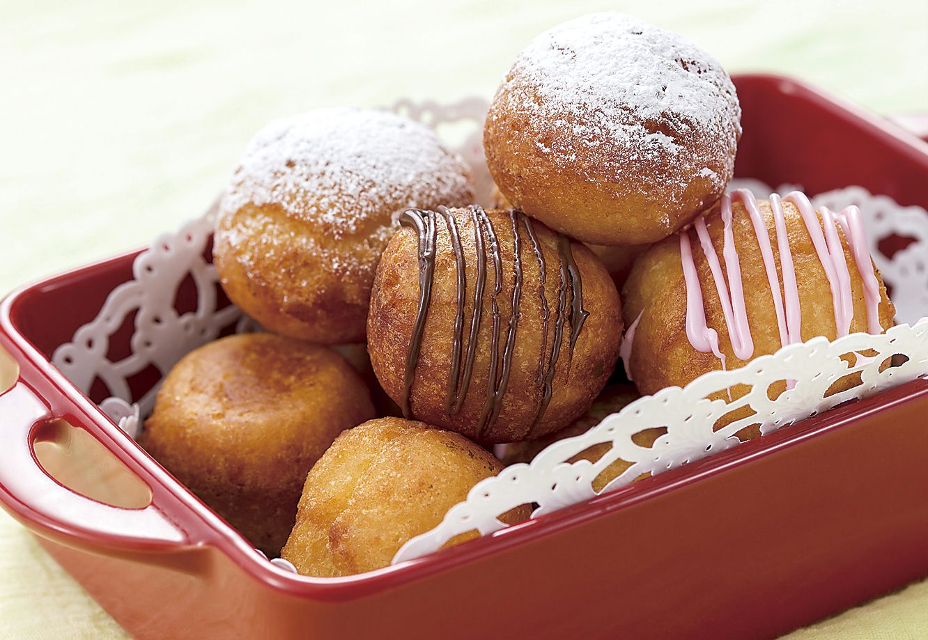 ●作り方 1)豆腐はボウルに入れ、泡立て器で崩しながらつぶす。 2)1)にホットケーキミックスを加え、混ぜる。 3)2)をスプーンですくって、180℃の油に入れ、全体がきつね色になるまで揚げる。 4)器に盛り、チョコレートや粉糖をかける。 ●1個分77k㎈