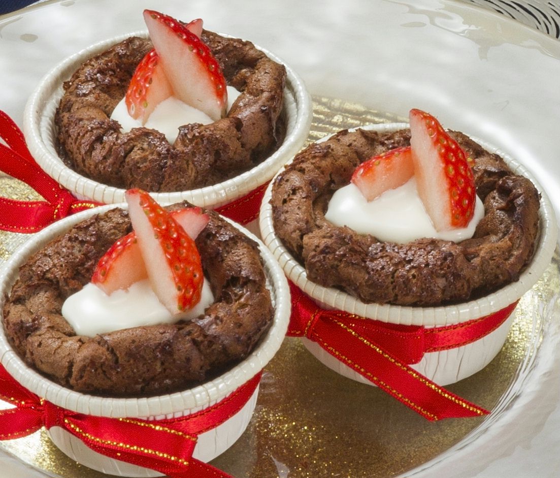 ※15㎝の丸い型なら、卵3個、チョコレート150gで。