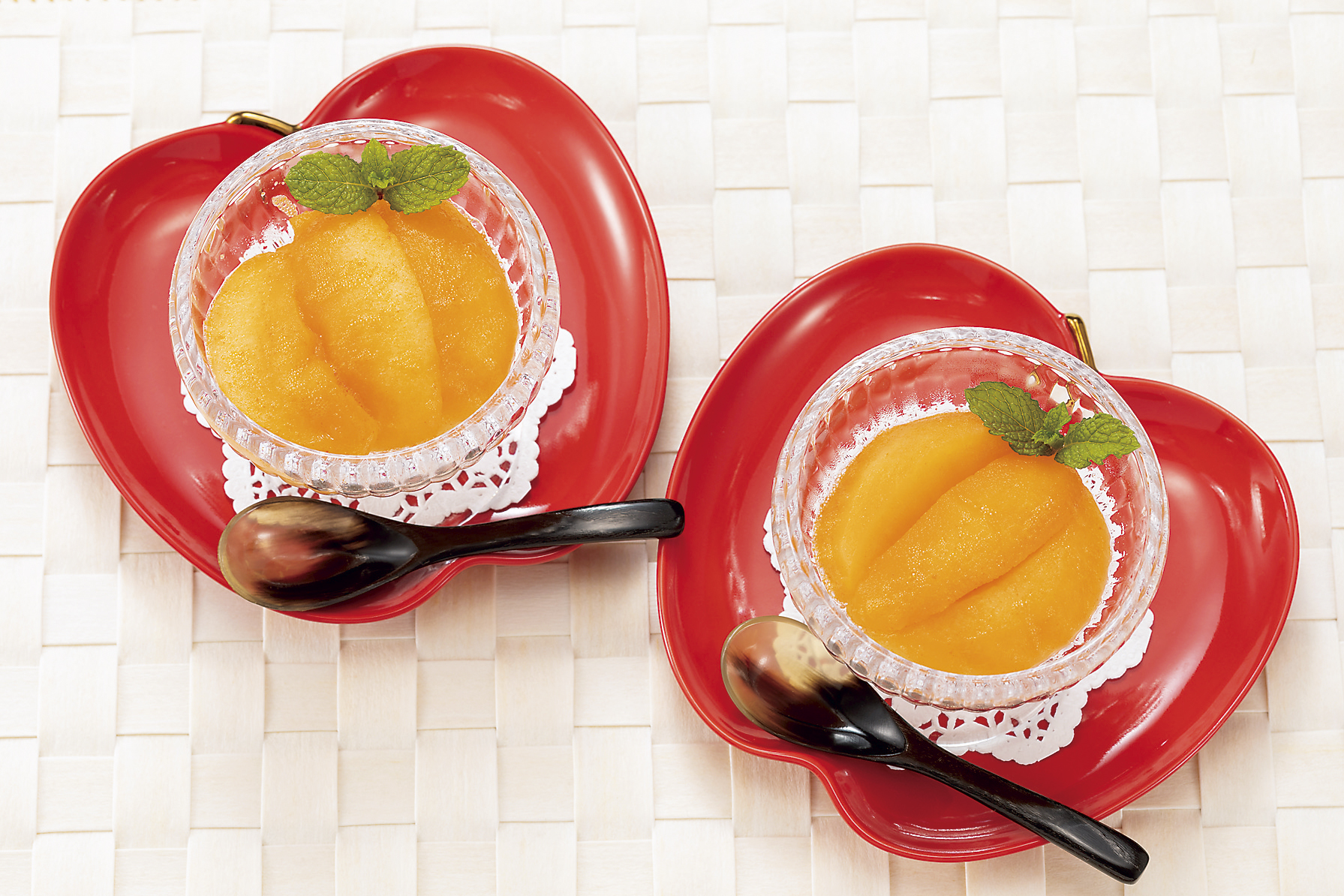 1)りんごは8等分のくし形に切り、種を取り、皮をむく(赤いりんごの場合は、うさぎ切りなどにして皮を半分残すと色がきれいに仕上がる)。