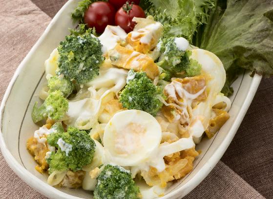 卵2個、かぼちゃ200g、ブロッコリー1/3株、玉ねぎ1/4個、A(マヨネーズ大さじ2、ヨーグルト大さじ2、塩・こしょう各適量)