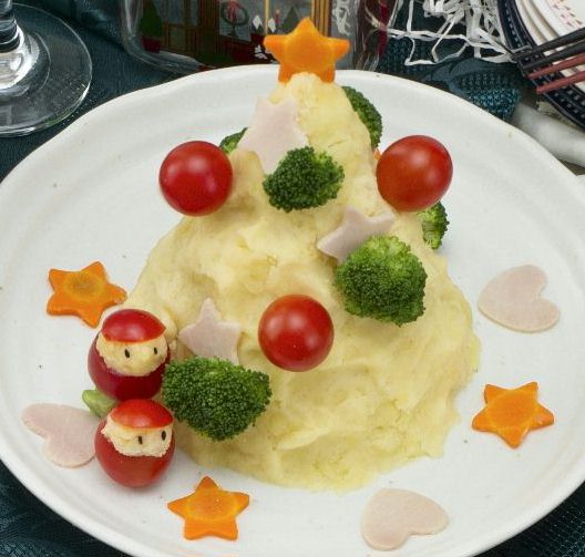1)いつものポテトサラダをツリーの形に盛り付ける。