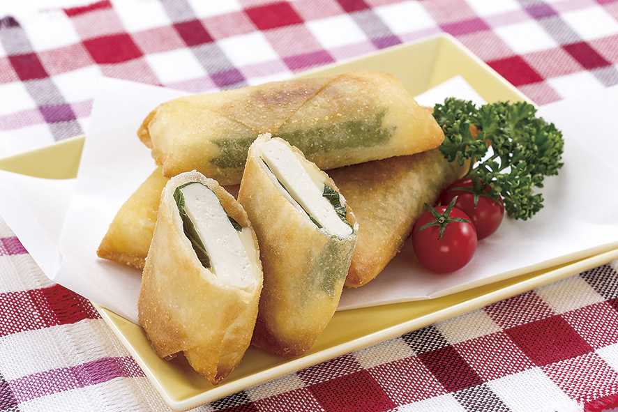 もめん豆腐1/2丁、スライスチーズ4枚、青じそ4枚、春巻きの皮4枚、サラダ油適量、小麦粉・水各小さじ1