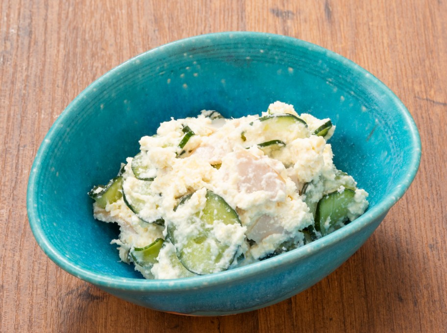 作り方 1)耐熱皿におからを広げ、電子レンジで1分加熱して水分を飛ばし、冷ましておく。 2)きゅうりは輪切りにし、塩で揉む。ハムはお好みの大きさに切る。 3)ボウルに1)2)とAを入れ、混ぜ合わせる。 ■1人分 150㎉、食塩相当量 0.5g ※大人用には黒こしょうを振っても