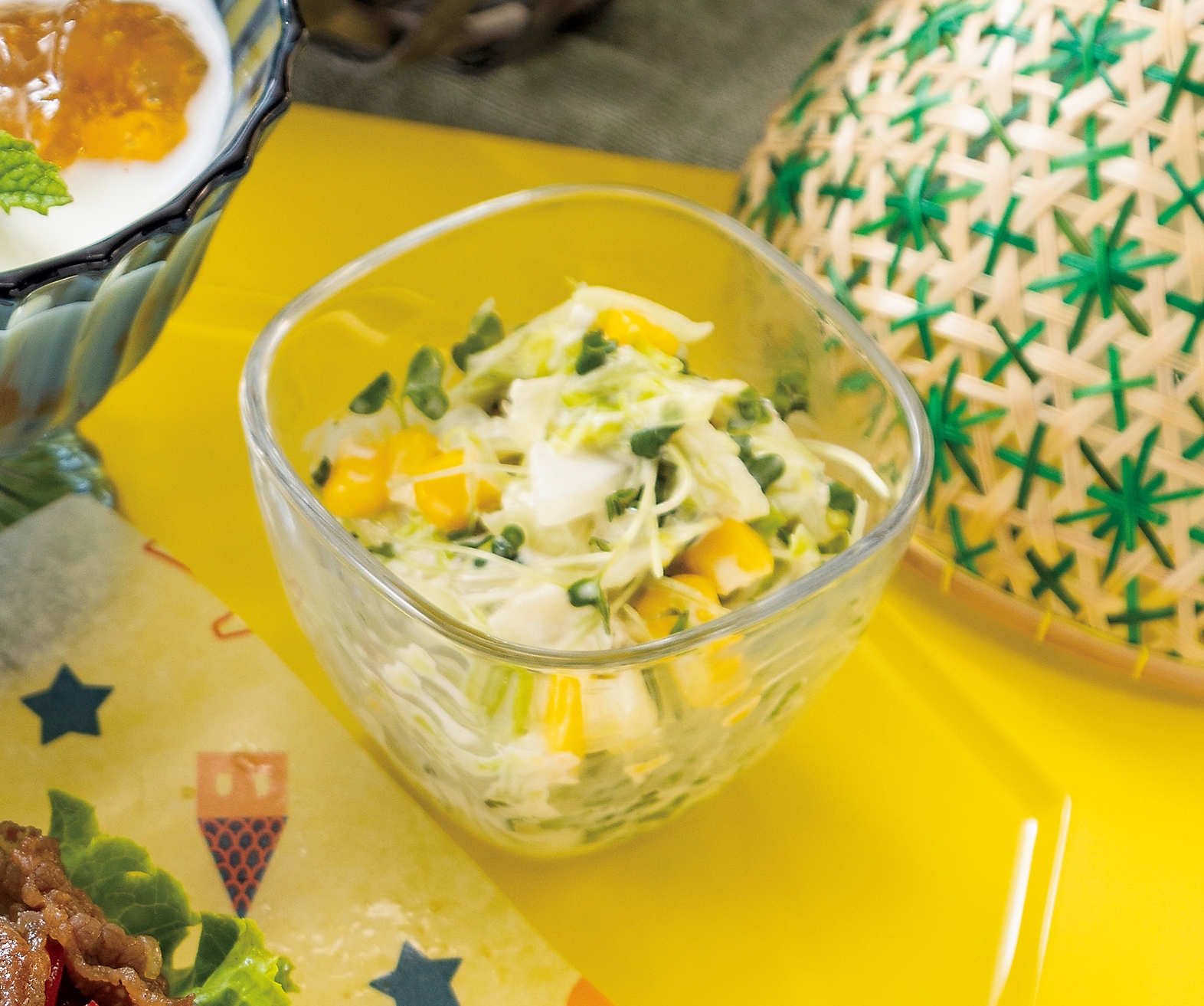 ・B[ブロッコリースプラウト(食べやすい長さに切る)…1パック、スイートコーン…50g]