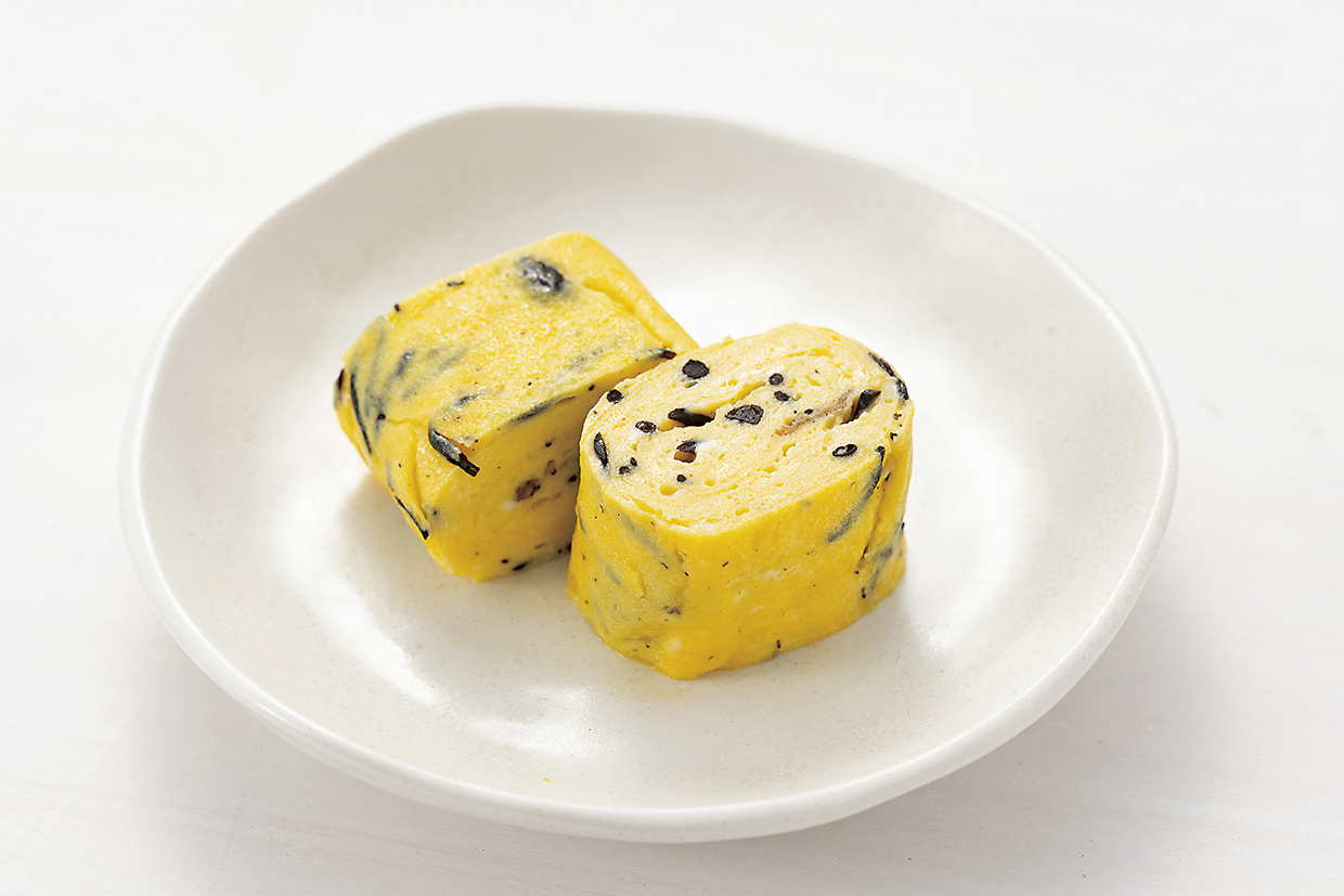 ひじき入り卵焼き 卵液に惣菜のひじきの煮物を入れて卵焼きに 味付けはひじき煮の煮汁だけで◎