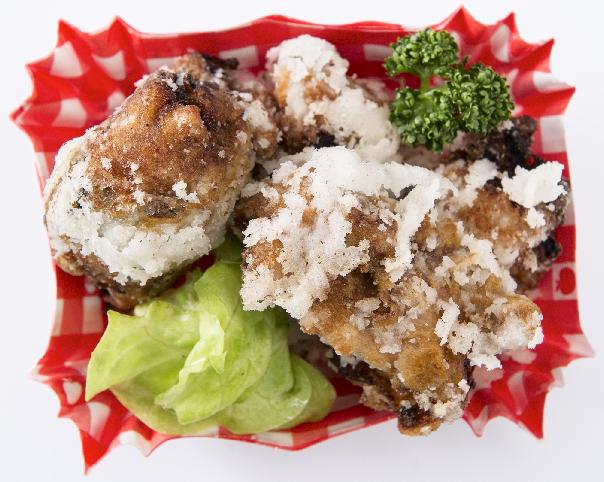 1)サバ缶(水煮でも味付でも)の汁気を切り、片栗粉をまぶし油で揚げる。