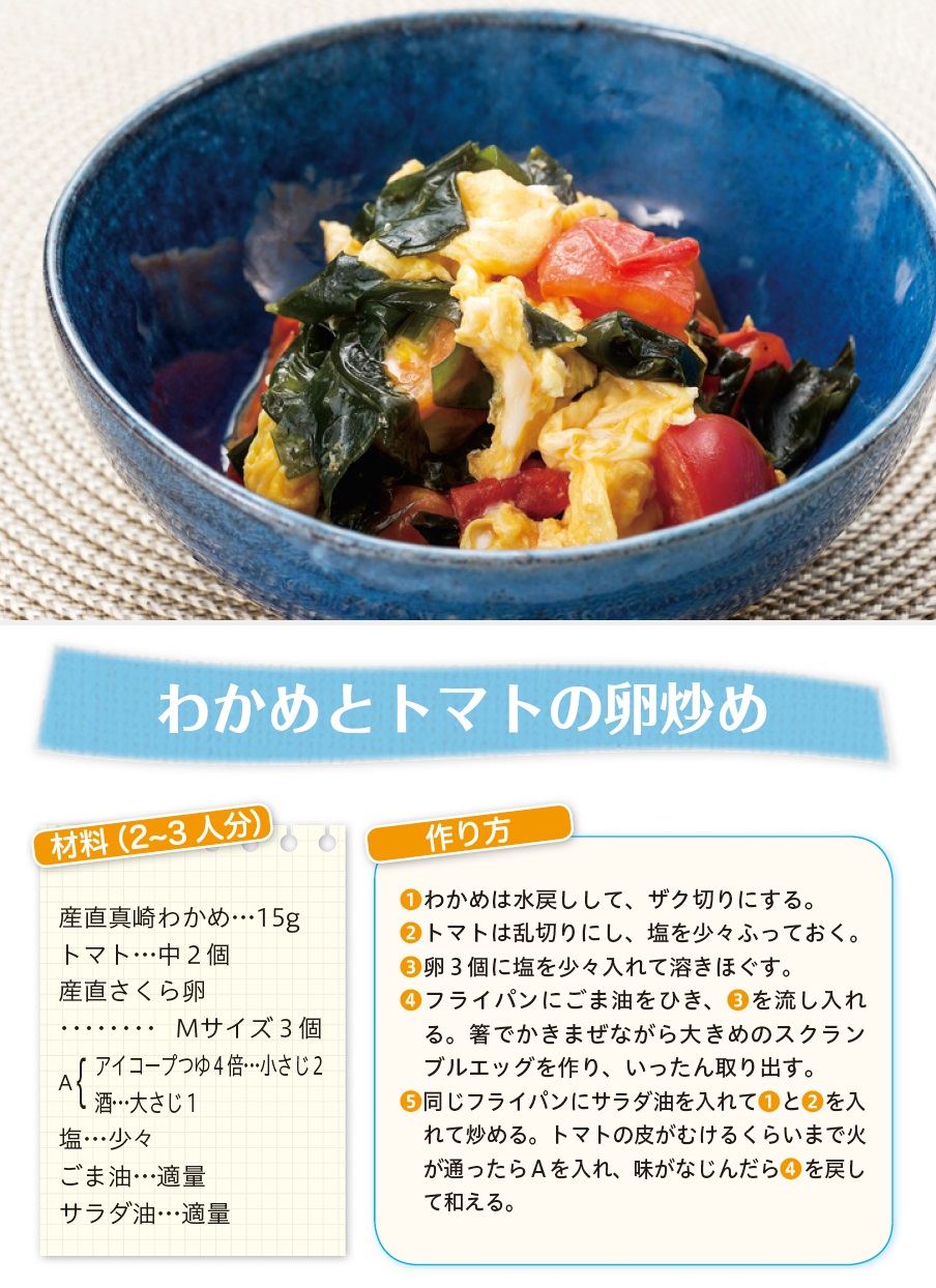 わかめとトマトの卵炒め【産直40周年記念★産直真崎わかめレシピ集より】
