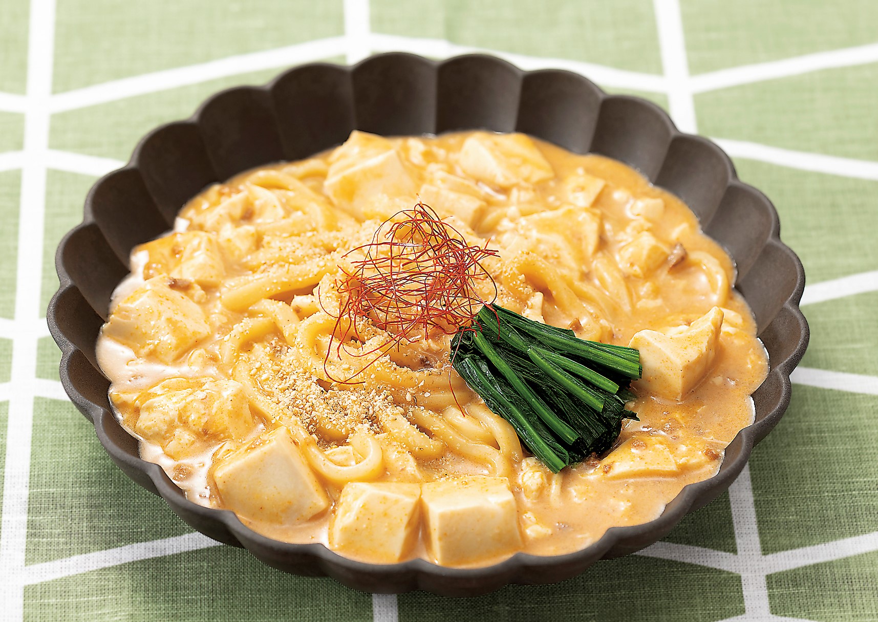 ・コープ讃岐うどん…2食(400g)・A [麻婆豆腐2人分、調整豆乳200 ml、アイコープだしたっぷりつゆ3倍大さじ1]