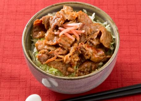 3) どんぶりにご飯をよそい、千切りキャベツを好きなだけで