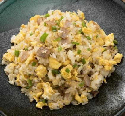4)3)にご飯を加えて炒め、ラー油、塩で味を調える。