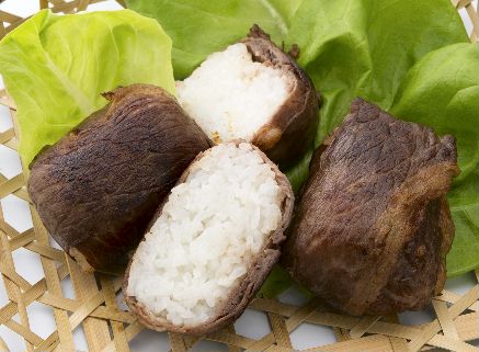 ご飯2膳分(280g)、牛薄切り肉4枚、しょうがのみじん切り少々、醤油・酒各大さじ1、砂糖大さじ2/3、ごま油小さじ1/2