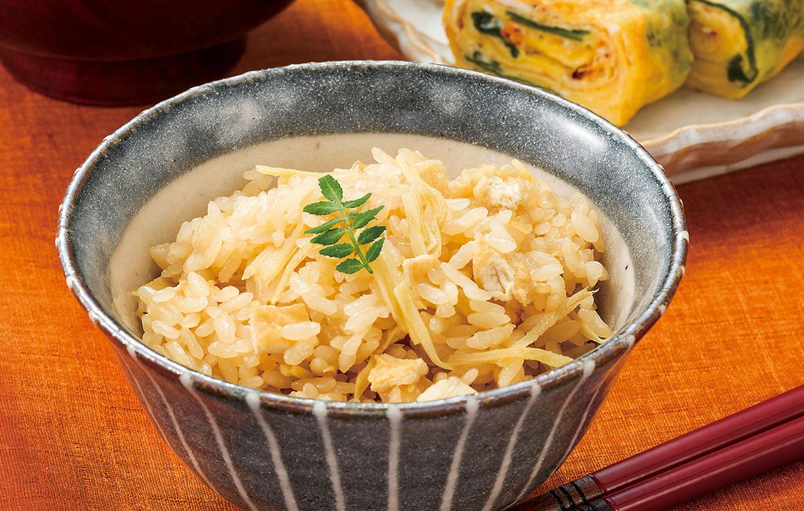 米2合、しょうが30g、油揚げ小1枚、アイコープつゆ大さじ3、塩ひとつまみ