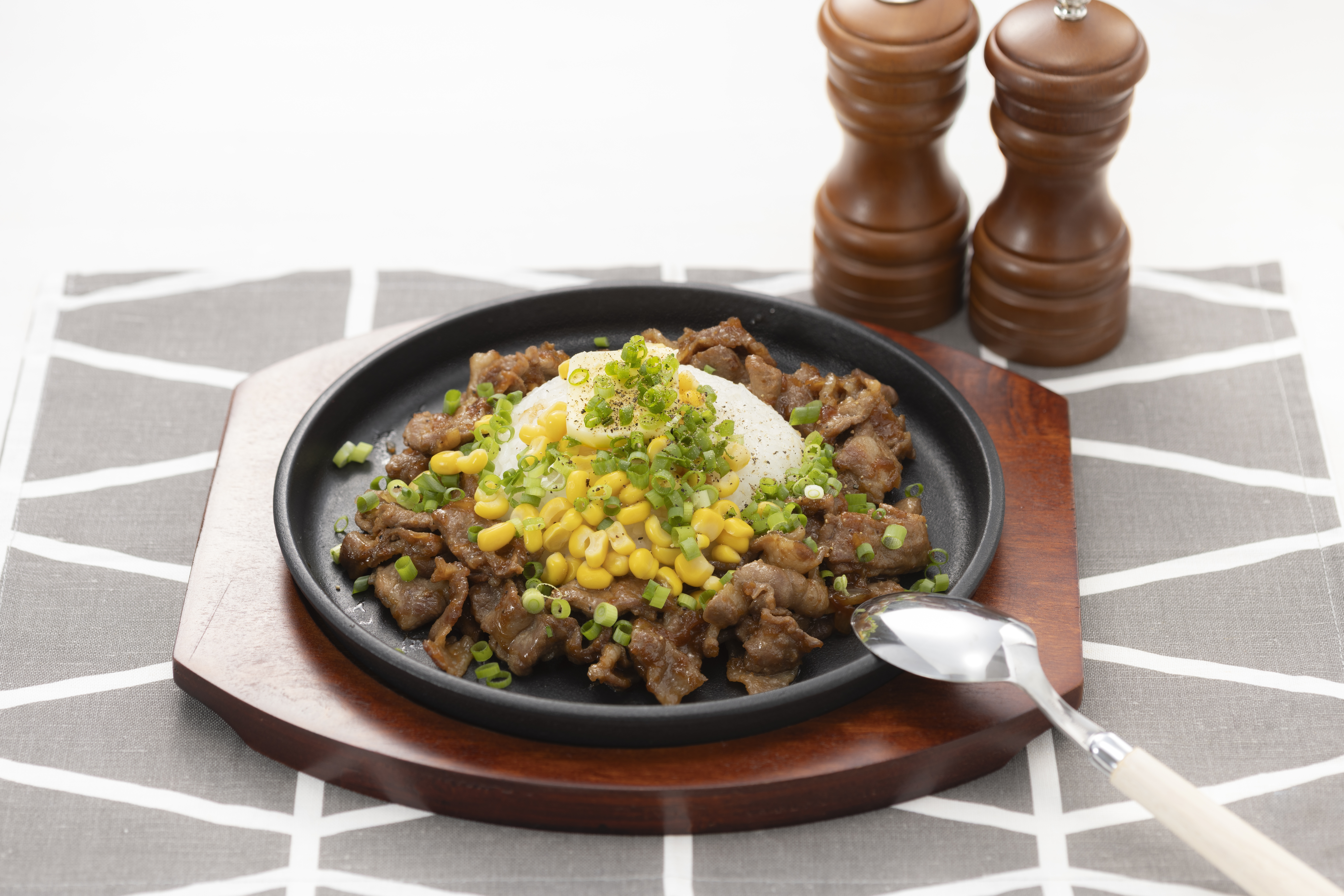 3)器に2)を盛り付け、ご飯をのせる。その上にとうもろこし・バター・万能ねぎ・こしょうをトッピングする。