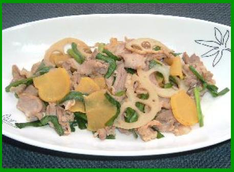 豚切り落し肉200g、れんこん200g、たくあん(好み
