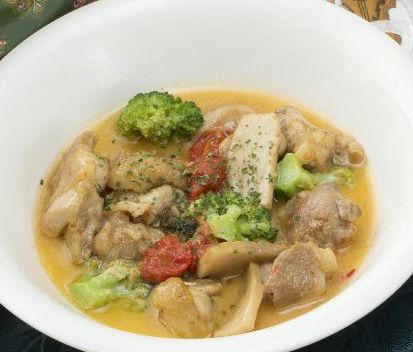 5)小房に分けて茹でたブロッコリーを加え、仕上げにドライパセリをふる。