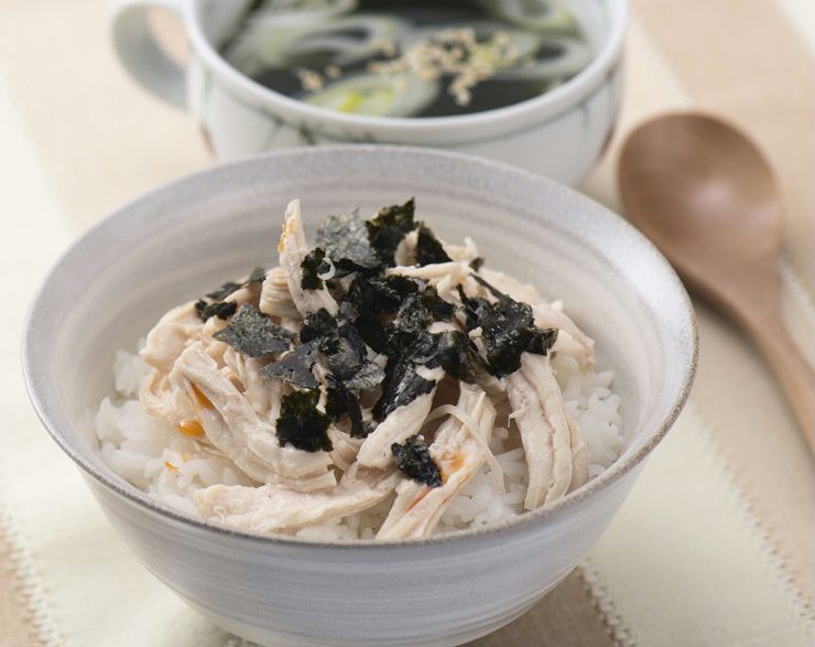 鶏むね肉1枚、塩小さじ1/2、砂糖小さじ1、ご飯2膳分、焼きのり1枚