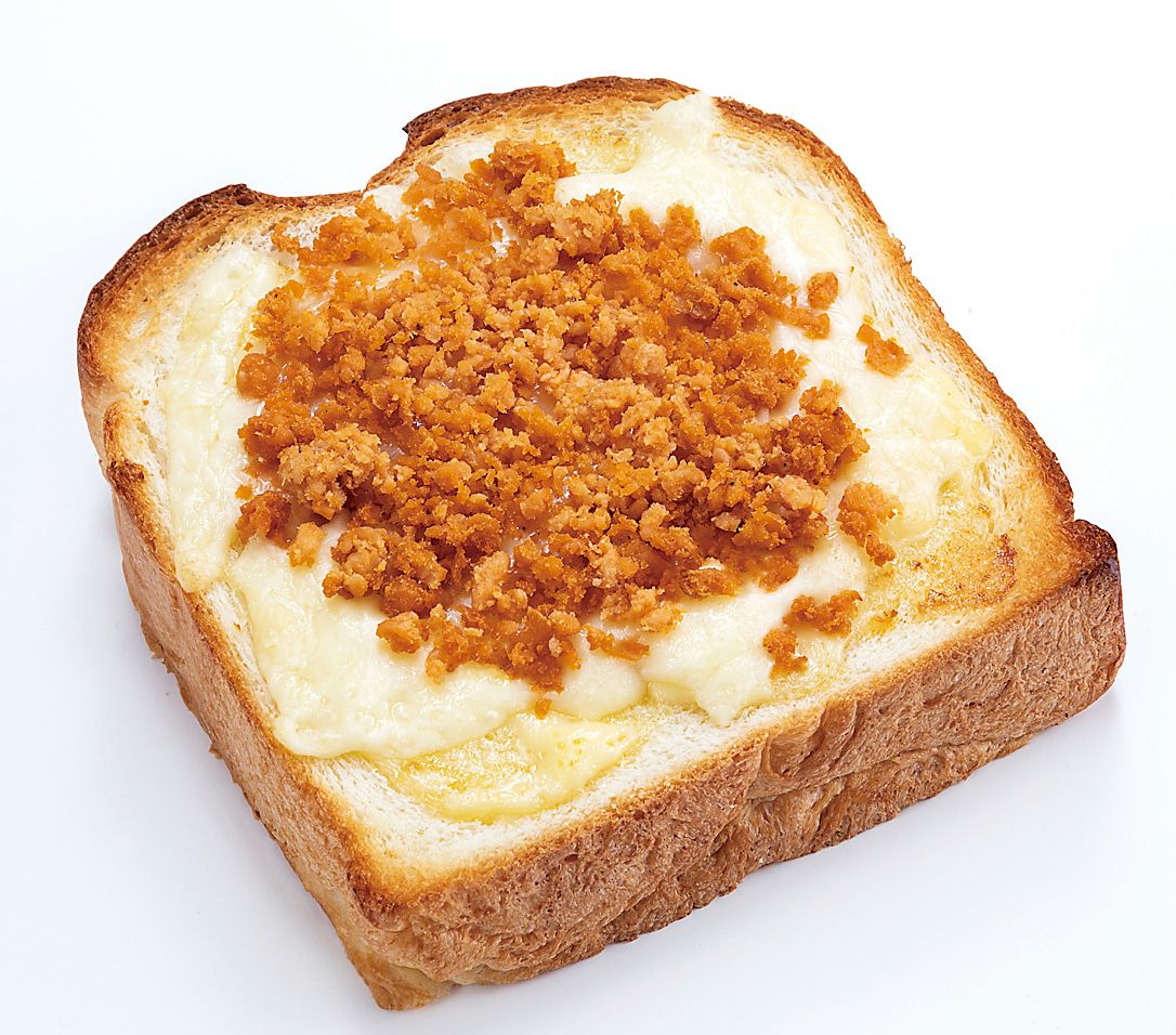 1) パンにマヨネーズを塗り、鮭フレークとチーズを乗せる。