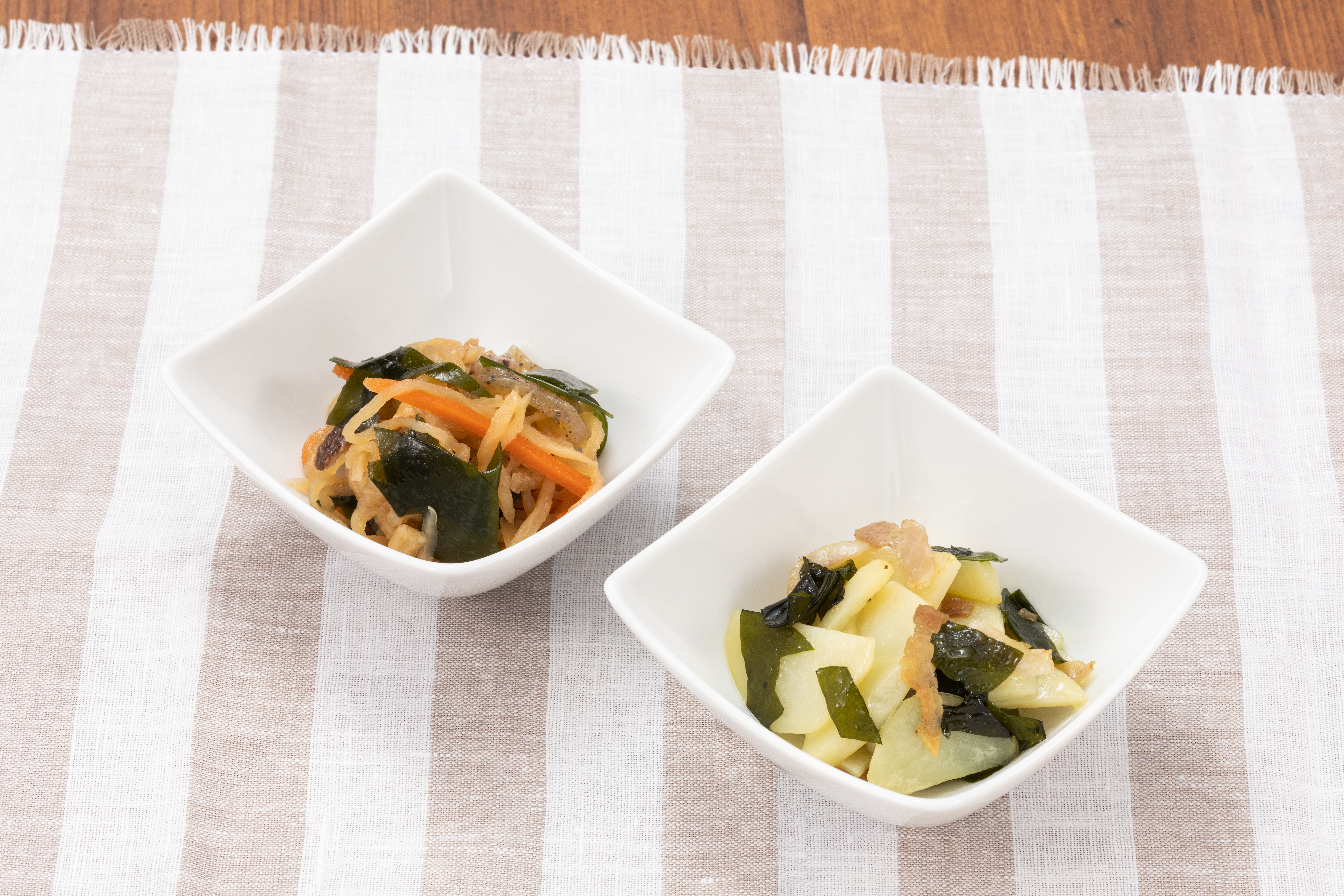 産直真崎わかめは、数日使う分を水戻しして一口大に切り、保存容器に入れて冷蔵庫へ。〝ちょい足し”に大活躍! ▼ 切干大根の煮物に 切干大根をふだん通りに煮て、完成直前に ‟わかめちょい足し” ❤わかめで彩りも鮮やかに ▼ じゃがいもとベーコン炒めに じゃがいもとベーコンを炒め、塩・こしょうで調味したら、完成直前に‟わかめちょい足し” ❤じゃが芋の代わりにれんこんもおすすめ