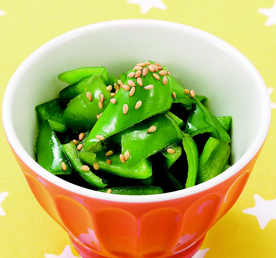 ピーマン4個、めんつゆ大さじ2、サラダ油大さじ1、白煎りごま大さじ2
