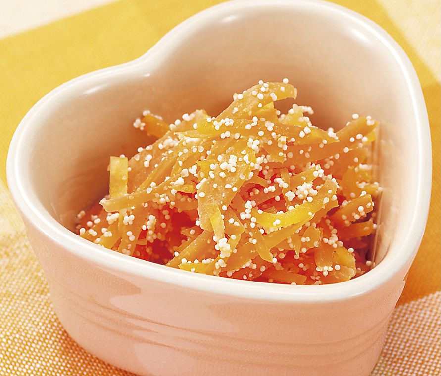 1)人参は千切り、またはピーラーで薄くむく。