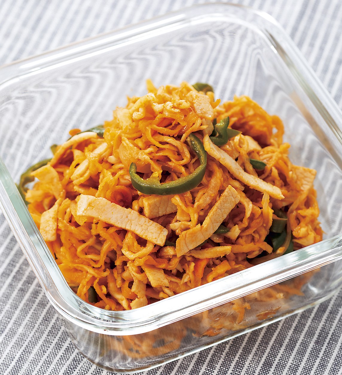 2)切干大根は水(分量外)で戻し、水気を切って粗く刻む。