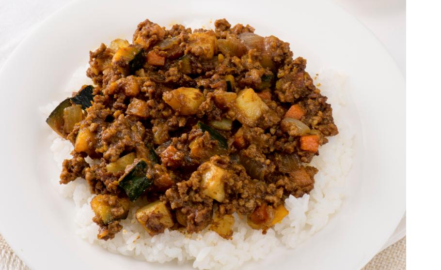 豚ひき肉300g、ズッキーニ1本、玉ねぎ1個、人参1/2本、じゃが芋1個、カレールー5~6かけ、オリーブオイル適量