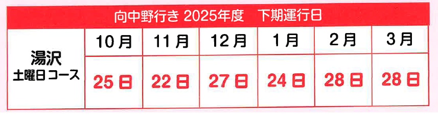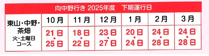 > ベルフ向中野行き運行表