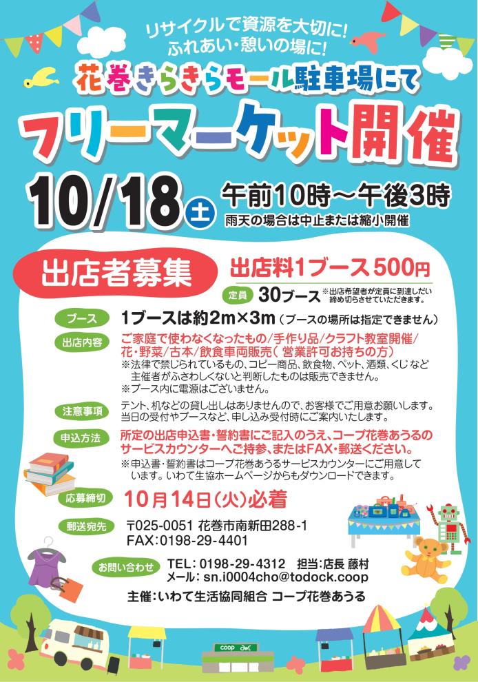 10/18(土)花巻きらきらモール駐車場にてフリーマーケット開催!出店者募集中