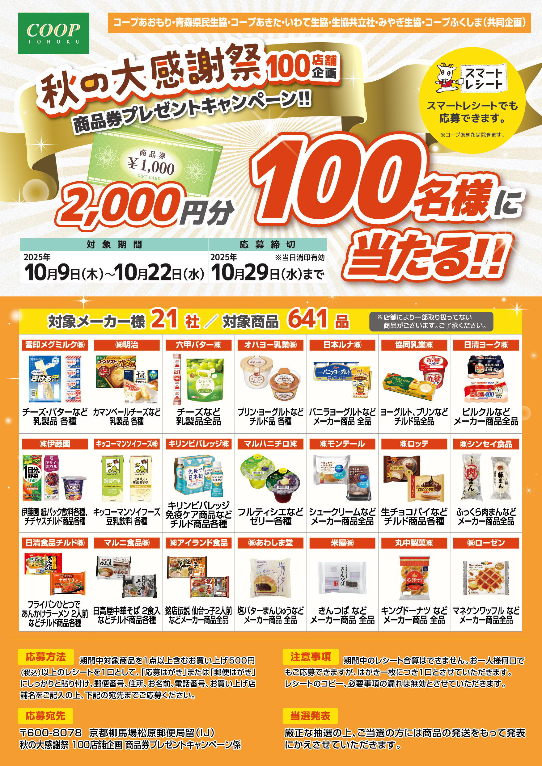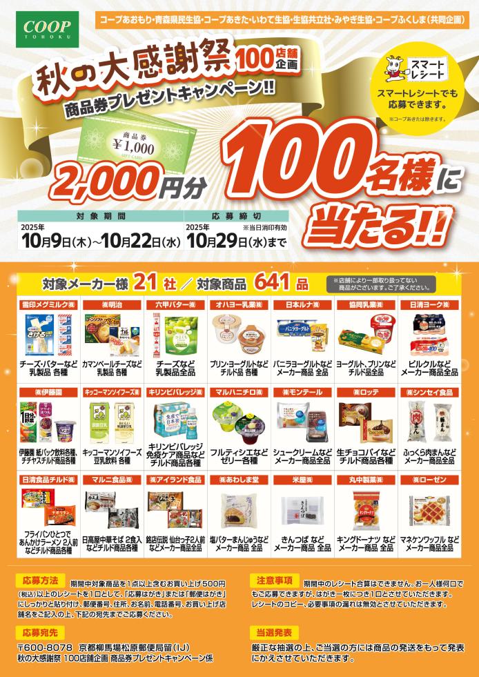 秋の大感謝祭 100店舗企画 商品券プレゼントキャンペーン