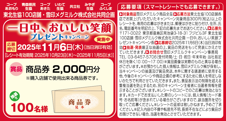 coop×雪印メグミルク 一日中、おいしい笑顔プレゼントキャンペーン