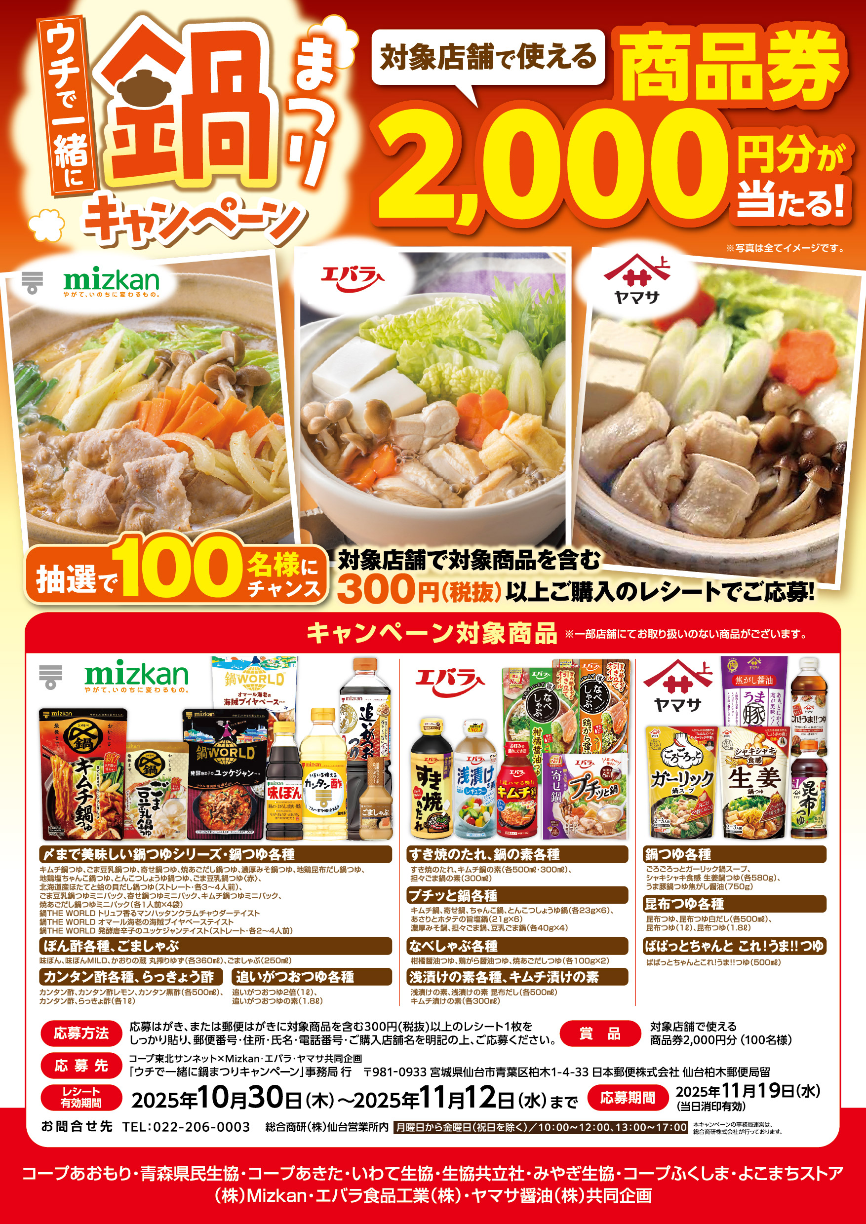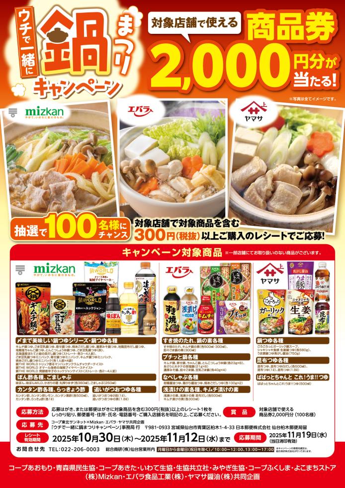 > coop×ミツカン×エバラ×ヤマサ ウチで一緒に鍋まつりキャンペーン