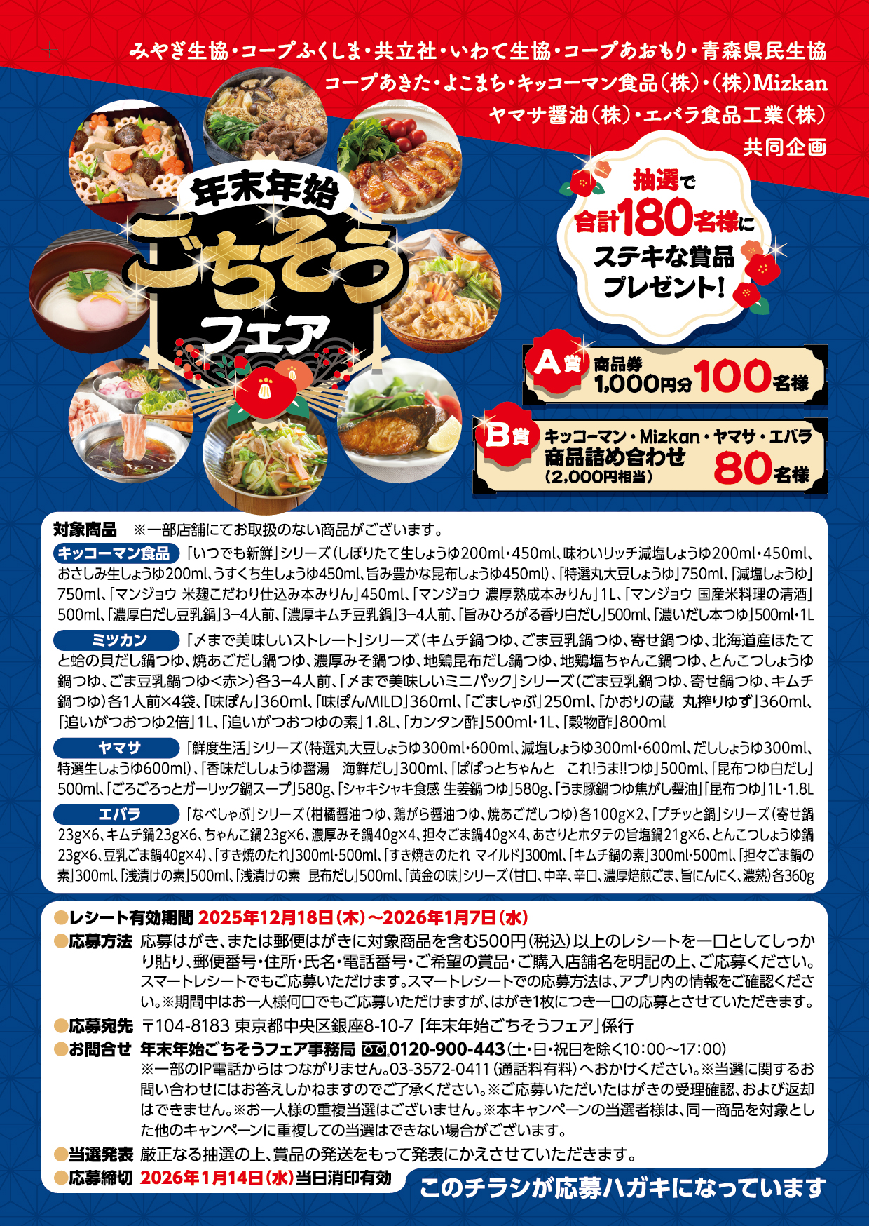 > COOP×キッコーマン×ミツカン×ヤマサ×エバラ 年末年始ごちそうフェア